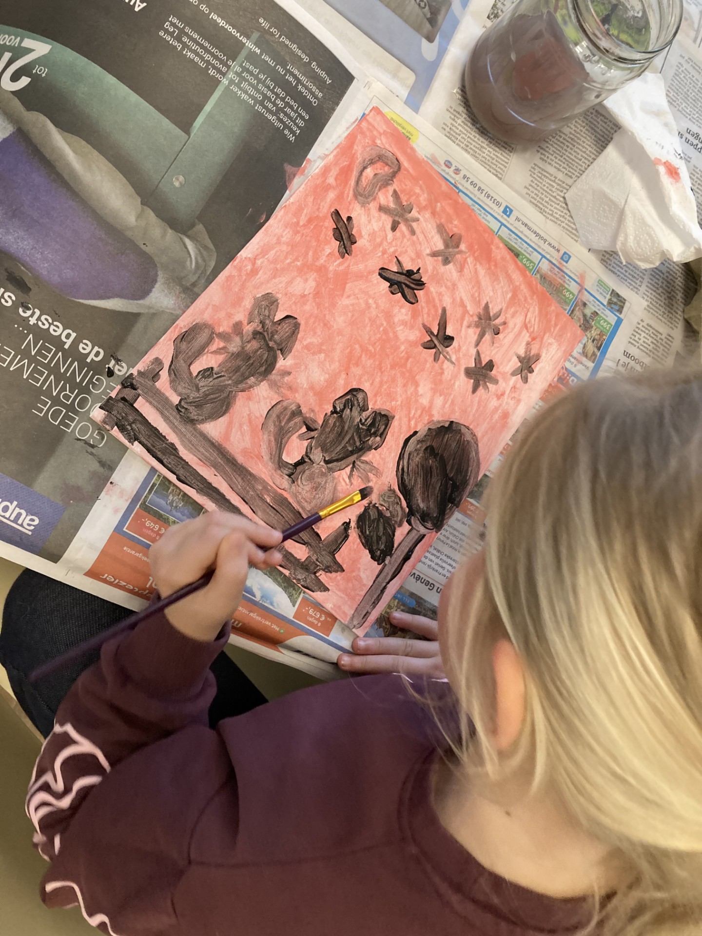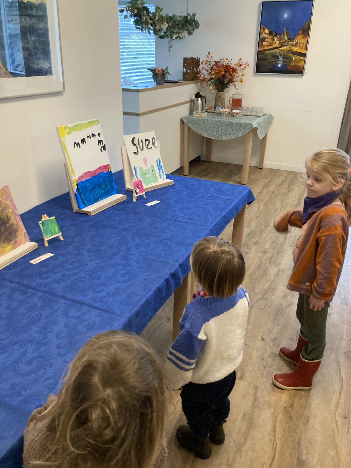 Zaterdag 7 februari j.l. is er in het dorpshuis door 11 kleine kunstenaars heerlijk geschilderd. Zondag de 8e werd de tentoonstelling onder belangstelling van ouders en grootouders geopend.