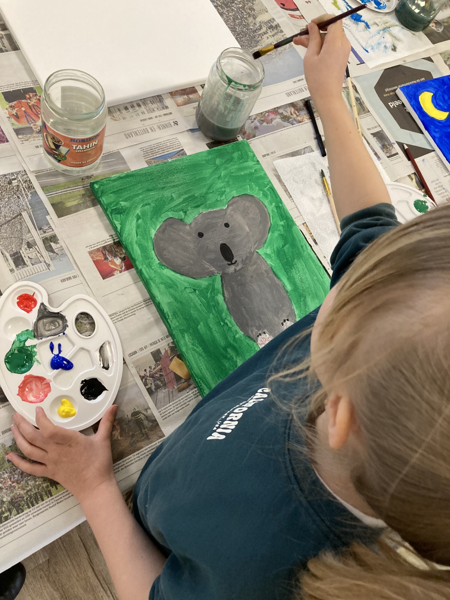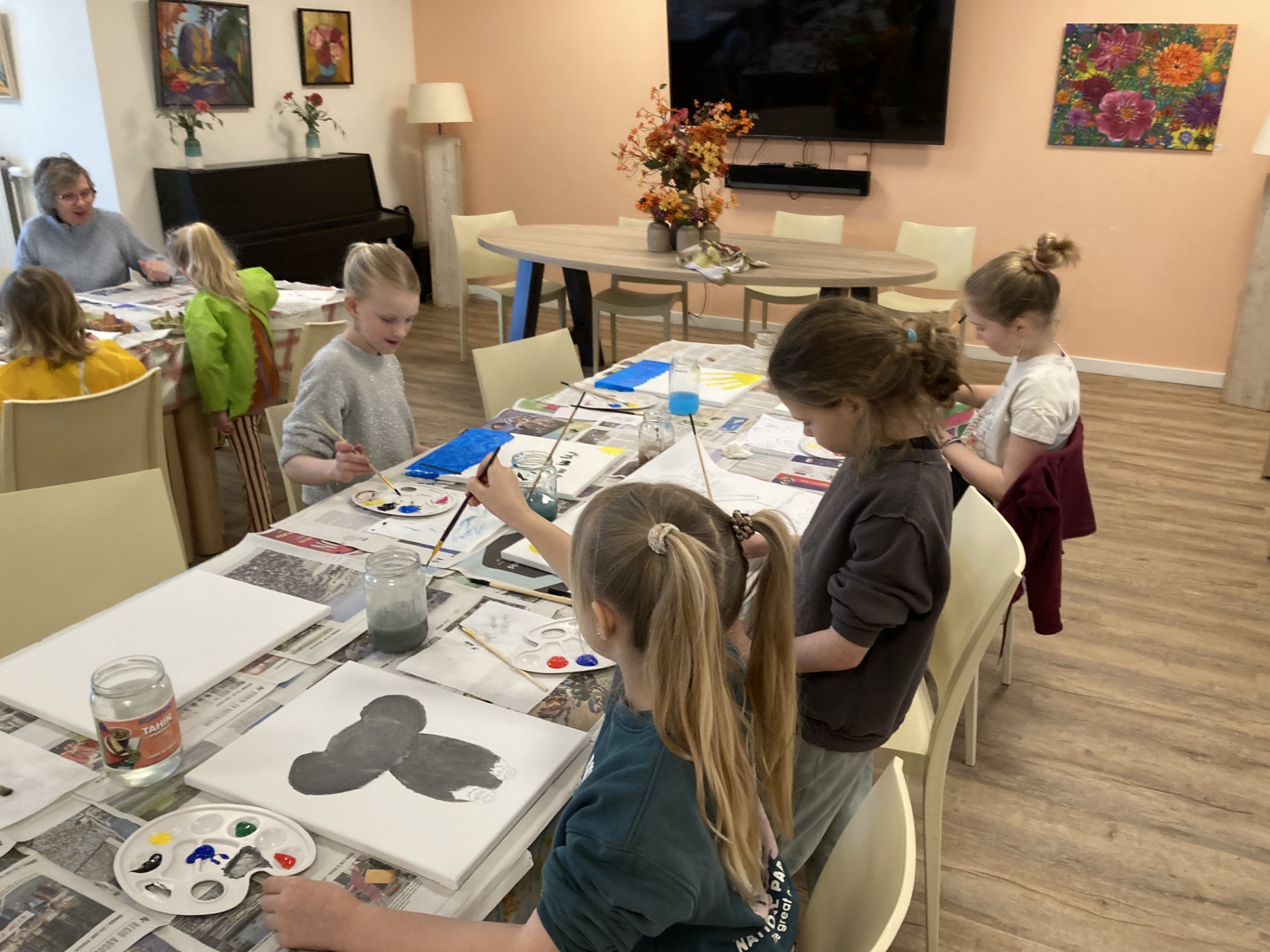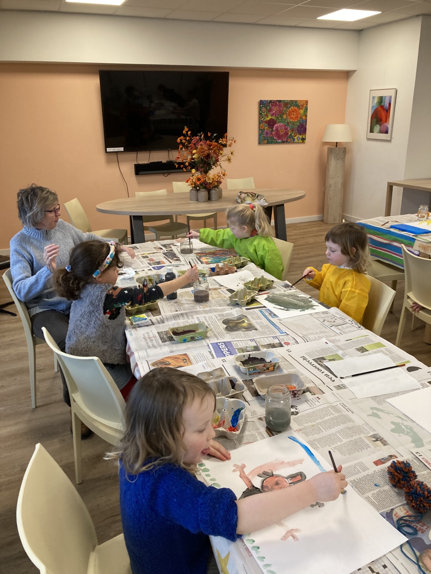 Zaterdag 7 februari j.l. is er in het dorpshuis door 11 kleine kunstenaars heerlijk geschilderd. Zondag de 8e werd de tentoonstelling onder belangstelling van ouders en grootouders geopend.